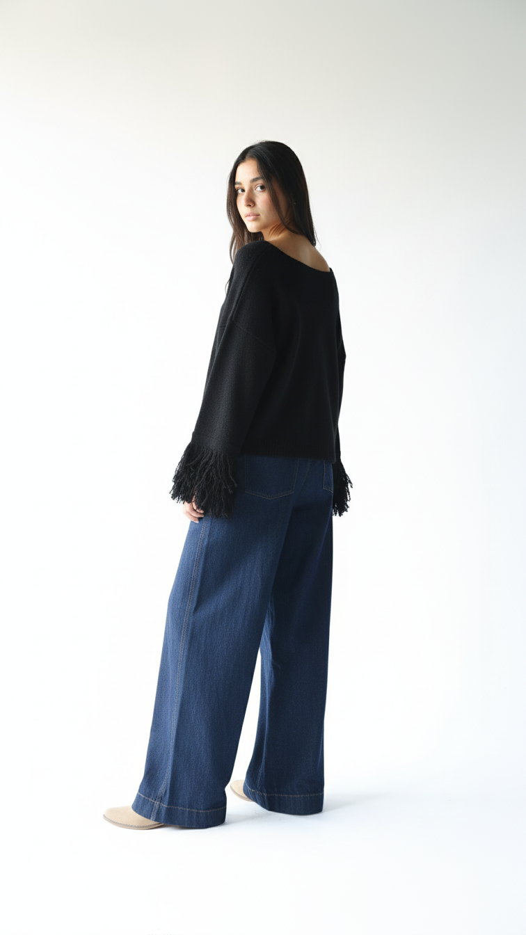 A timeless black knit pullover designed for effortless everyday style. Soft, comfortable, and easy to layer, this versatile piece offers a clean silhouette that works perfectly with both casual and elevated looks. A wardrobe essential for any season.