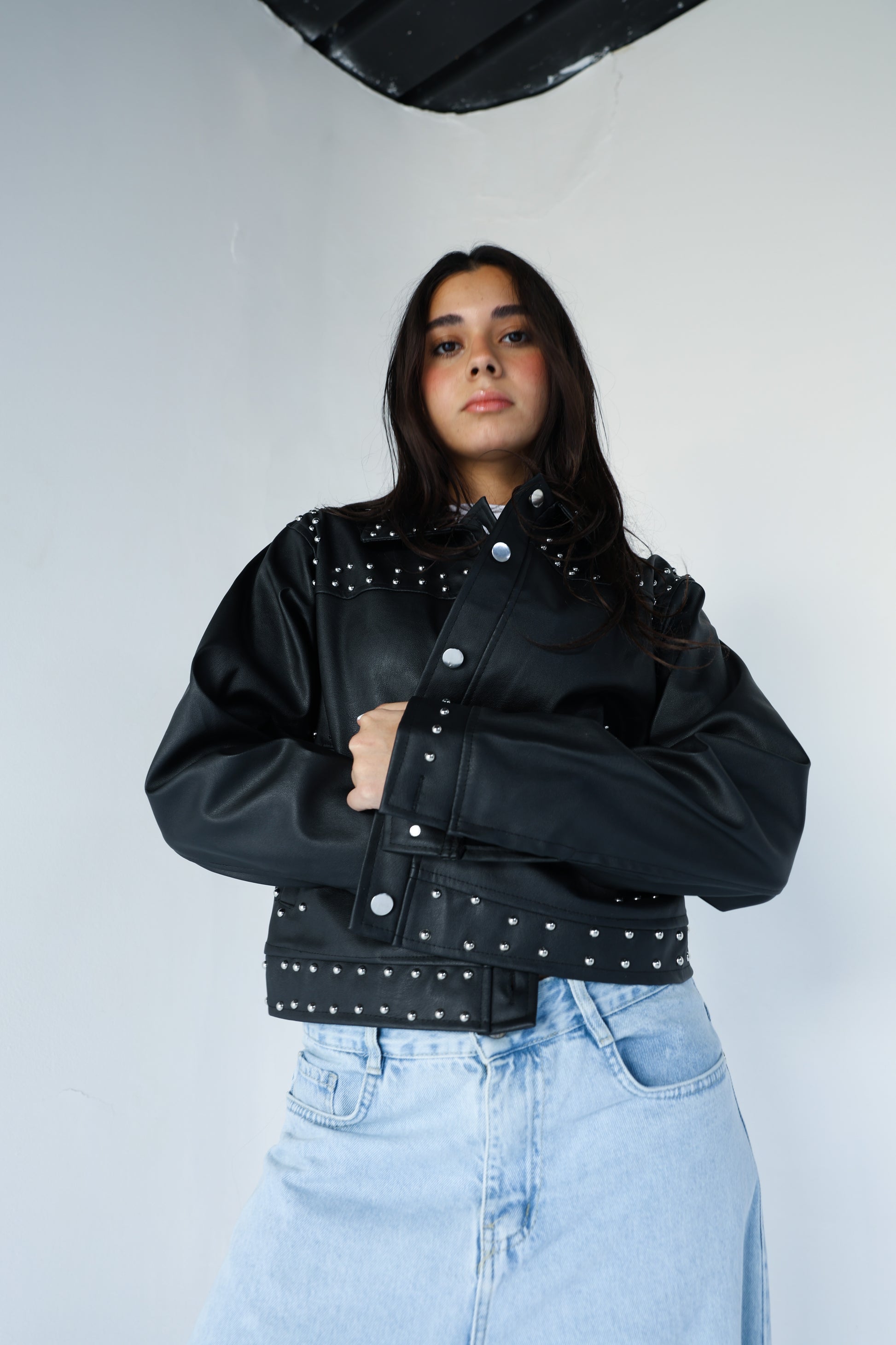 Black leather jacket with silver studs